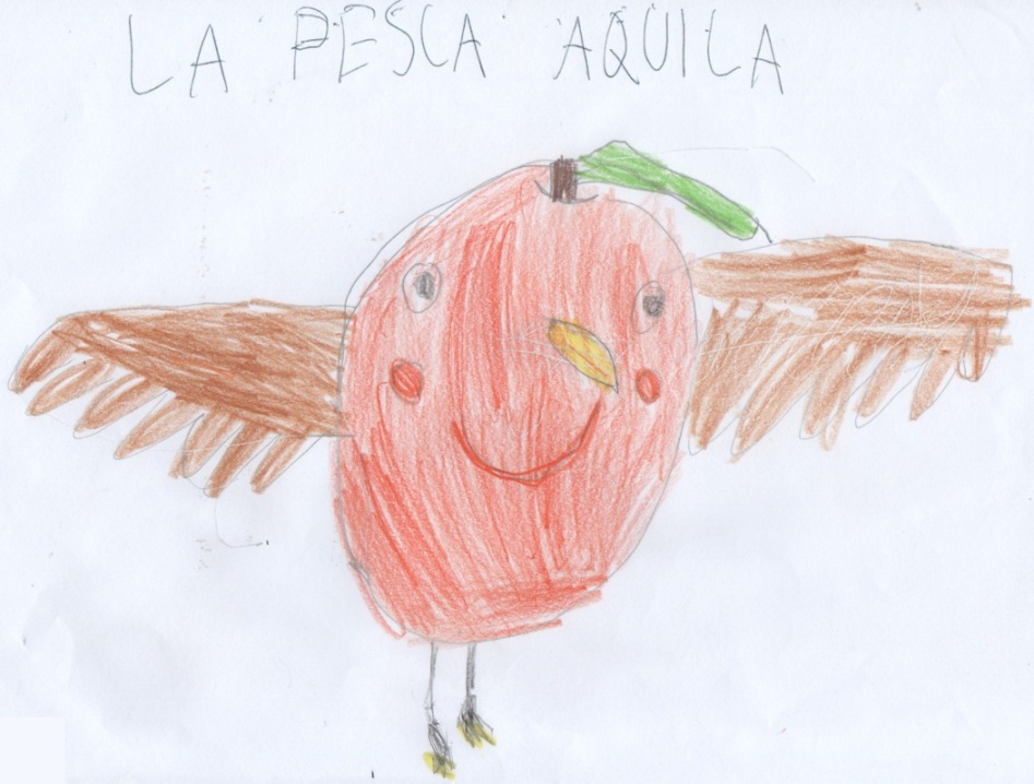 E quindi i bambini hanno pensato di rappresentare la frutta preferita in chiave un po' diversa dal solito... quasi fiabesca.